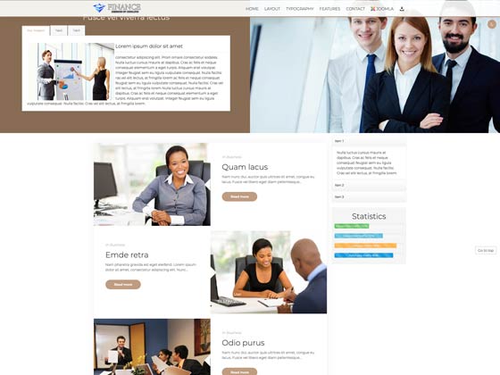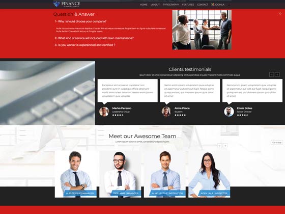 Finance Joomla Template exclusively designed for finance, accounting, insurance, financial, law office, investment firm, business planning and consulting websites. Using quickstart you can build a great business website in couple of minutes.