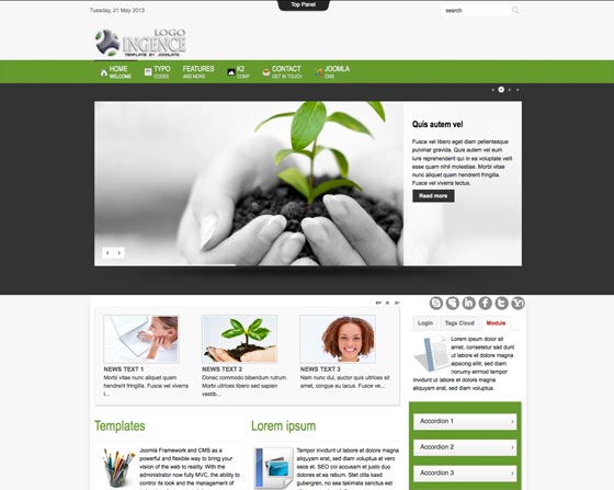 • On download is included logo.psd, template help file, all extensions and demo sql